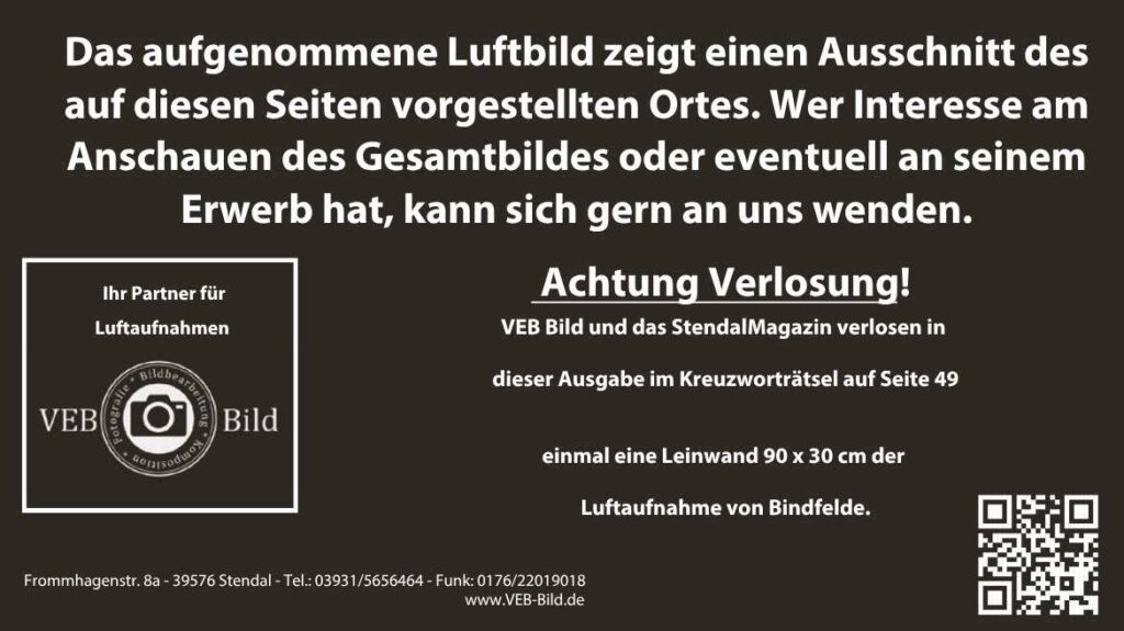 Bindfelscher Humor ist Bauernschläue: Kennen Sie Bindfeldschen Kaviaa? Aus früherer Zeit kursiert die Anekdote, Offiziere des Stendaler Husarenregimentes wollten im Gasthaus Bindfelde dem dortigen Wirt eine Lektion erteilen. Sie bestellten bei dem Mann, von dem es hieß, dass er alles hat und alles kann, ein zünftiges Sektfrühstück mit Kaviar, als wären sie im Berliner Adlon, und bekamen daraufhin würzig duftendes dunkles Pflaumenmus. Die honorigen Gäste konnten kaum mit Worten parieren, als der Wirt erklärte: „Dat is Bindfelschen Kaviaa, wussten Sei dat nicht?“ Und – wussten Sie es? Ortsteil-Büro: Dorfstraße 4, 39590 Bindfelde. Nachfragen unter 03931 65-1155. E-Mail: stadt@stendal.de, Ortsbürgermeister: Herr Oliver Nitz, E-Mail: otb-bindfelde@arcor.de