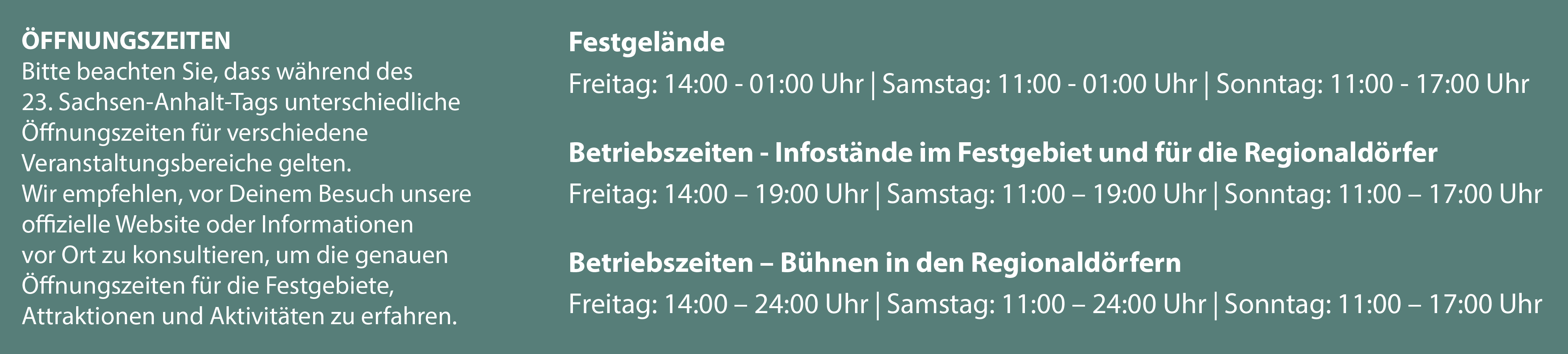 Drei Schreibtische weiter im OrgBüro hat Caroline Stock die Flächenplanung vor sich. Heißt: Sie weiß am besten, wer wo im Festgebiet zu finden ist. Doch nicht nur die Stellplätze für die einzelnen Akteure in den Regionaldörfern, die Themenmeilen und die Bühnen muss sie akribisch in den Plänen verzeichnen, sondern auch die Rettungsgassen, die Standorte von Strom- und Wasserversorgung, die Müllsammelplätze und vieles mehr. Bei einem Großereignis wie den Sachsen-Anhalt-Tag, zu dem mehr als 150.000 Gäste erwartet werden, muss der Gastgeber auf alles vorbereitet sein. Denn ebenso wichtig wie der Spaß und die Unterhaltung sind die Sicherheit der Besucher und beste Bedingungen für die Mitwirkenden.