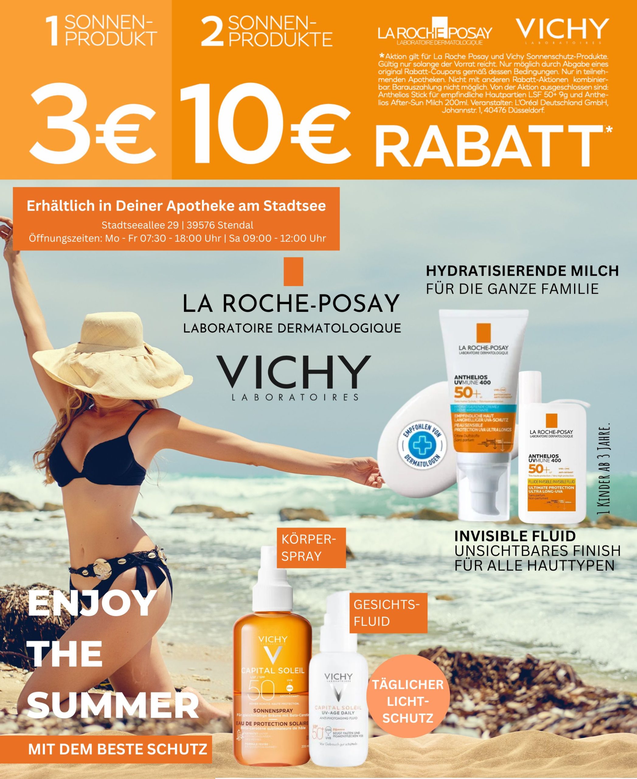 Sind Sie vielleicht noch auf der Suche nach dem passenden Sonnenschutzmittel oder haben Sie Fragen zu Ihrem Hauttyp und dem richtigen Lichtschutzfaktor? Kommen Sie gerne zu uns in die Apotheke am Stadtsee. Wir stehen Ihnen mit Rat und Tat zur Seite.