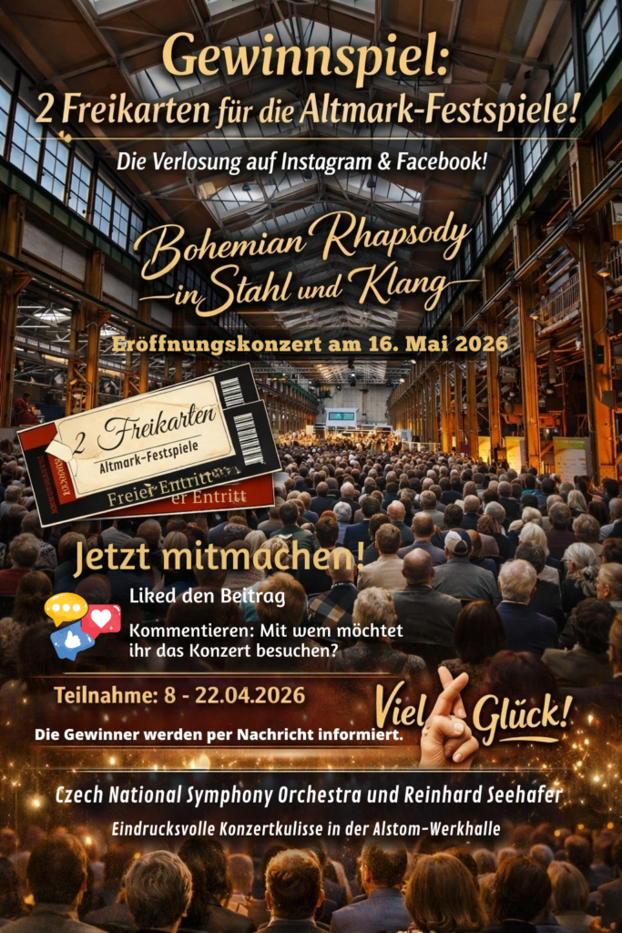 Wir verlosen 2 Freikarten für das bereits ausverkaufte, feierliche Eröffnungskonzert der Altmark-Festspiele am 16. Mai 2026.